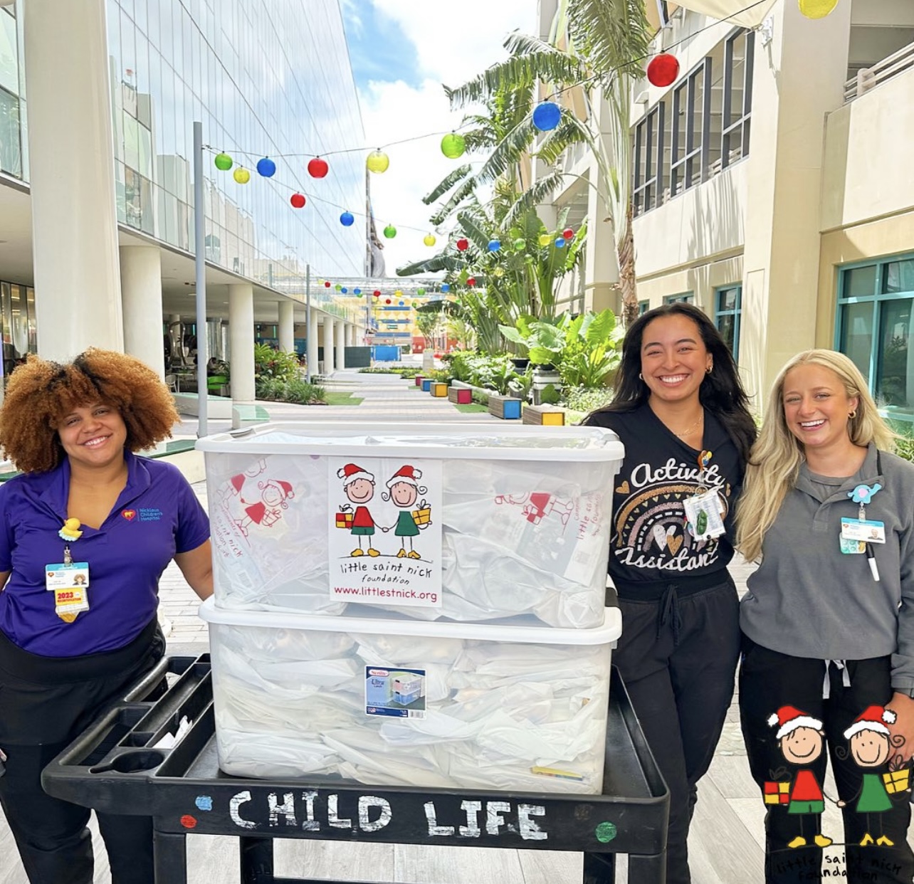 In August, LSNF Miami donated 100 St. Nick Gift Bags to the young patients at Nicklas Children's Hospital in Miami. Each of these St. Nick Gift Bags was carefully designed to bring smiles to the faces of children in crisis each containing a stuffed animal, pop-it toy, coloring book, pack of crayons, and get-well card.