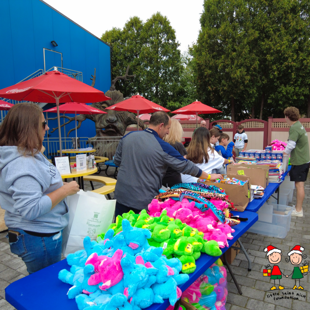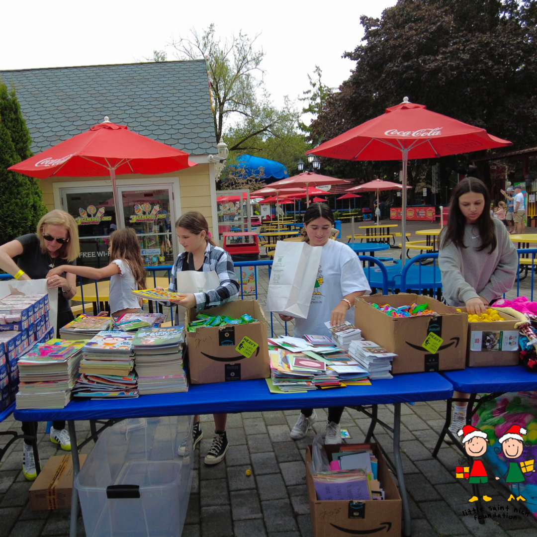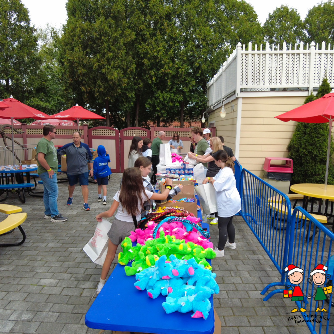 October proved to be a month of generosity and community spirit as LSNF NY and Adventureland Long Island hosted a heartwarming event to bring smiles to pediatric patients. At the beginning of October, the lively atmosphere of Adventureland Long Island was filled with kids of all ages, joining together to pack over 1,000 St. Nick Gift Bags.