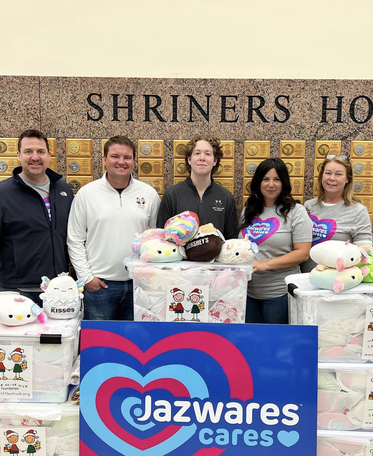 In March, the Little Saint Nick Foundation donated 300 St. Nick Gift Bags to Shriners Children’s Hospital in Philadelphia. Jazwares generously donated their Squishmallows that were included in every St. Nick Gift Bag. Furthermore, our foundation partnered with 4U Medical Designs to deliver IV Bag stickers for their pediatric patients.
