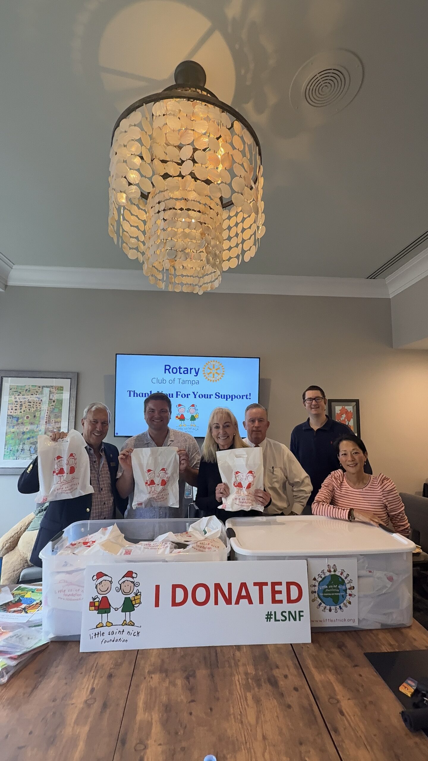 The Little Saint Nick Foundation (LSNF) is proud to announce that it has received a generous grant from The Rotary Club of Tampa, which supported the packing and delivery of 110 St. Nick Gift Bags to pediatric patients at Tampa General Hospital (TGH) this February.